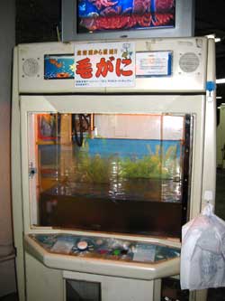 日夜、汗臭い男達が我を忘れて一心不乱にバットを振り回す歌舞伎町のオスローバッティングセンター近辺を散策していたところ、突如目に飛び込んできたのが、この「毛がにキャッチャー」である!