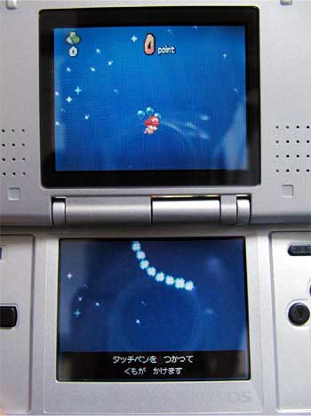 超カワイイ加藤ローサちゃん出演のTVCMを見たのがキッカケで購入しました。加藤ローサちゃんの可愛らしさに参ったからばかりではありません。CM内でため息をついたとき、雲が吹き飛びローサちゃんが「え?!」って感じで驚いてもう一度ゲームを始めてゲーム画面が出るシーンがありますな、この驚きが実にイイと思ったのです。っていうか、雲が吹っ飛ぶ画面にはワタシも驚きました、「マイクをそんなふうに使うの?」ってね。思えば、ファミコンでスーパーマリオを遊んだとき、初めて天に昇る蔦が出てきたその時の驚きと興奮。そんな驚きをこのCMに見たのです。