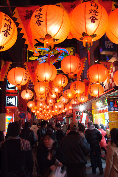 もともとこのランタン祭りは、「春節祭」として長崎新地中華街を中心に行なわれていたものなので特に中華街にはこのランタンの明かりが良く似合う。