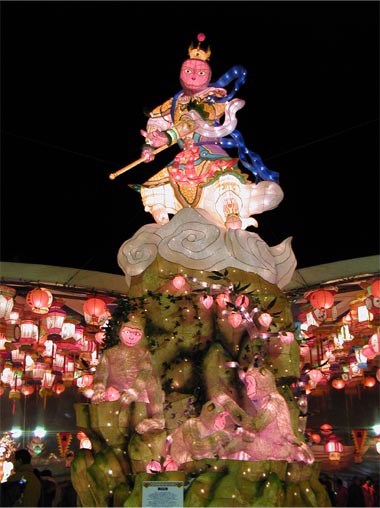長崎市で今日から「長崎ランタンフェスティバル」が始まった。「長崎ランタンフェスティバル」では、旧暦の正月を祝う春節から元宵節の行事にあわせて、長崎市内に12000個のランタンを灯し、様々なイベントが開催される。上の画像は申年にちなんだ高さ8メートルの斉天大聖孫悟空のランタン。