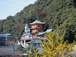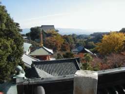 東側の中腹に広大な寺域を持つ朝護孫子寺(ちょうごそんしじ)がある。