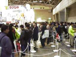 『どこでもいっしょ』ブースでトログッズを購入するためには、2時間も待たなければならない。 |