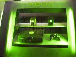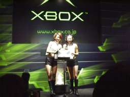 マイクロソフトはかなり「やる」! 今回のTGSの目玉は、Xboxなのだった。まさに黒船来襲! ブース自体の作りも豪華で、床がせり上がったり、ギャルが宙吊りで回転するなど、他社との金のかけ方の違いを見せつける。さすがビルG。 |