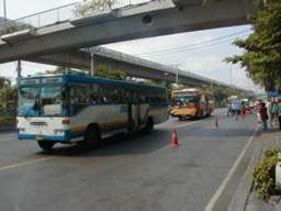 朝9時。モーチットに行くためサイアム駅からBTSに乗ってみた。ご覧のようにプラットフォームは、がらがら。BTSは、料金が高いため、地元の人はバスを利用するそうだ。 |
