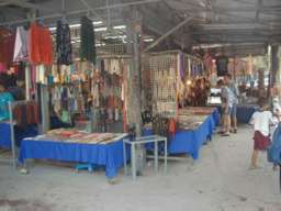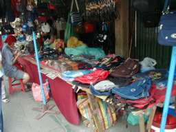 マーケットには8000件以上の店舗が集まり、「世界最大」との噂。 Tシャツは、49バーツ(約150円)。スポーツバッグは、99バーツで売っていた。 |