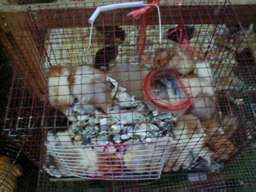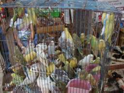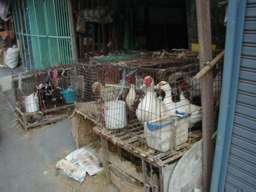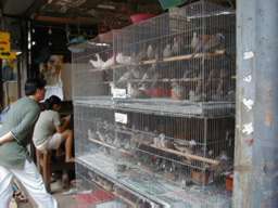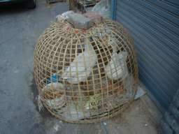 鳥専門店か!?ガチョウやニワトリを籠に入れて売っている。 |