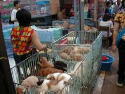 ペルシャ猫や、ダルメシアン犬も無造作に売られている。 |