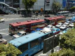 サイアムスクウェアにあるマーブンクロンセンターである。 休日ということもあり、道路は大渋滞である。 |