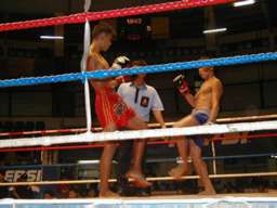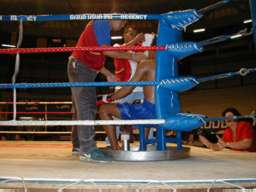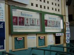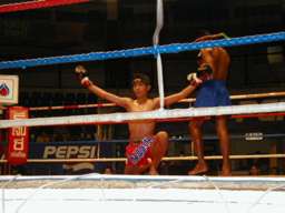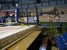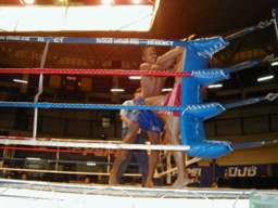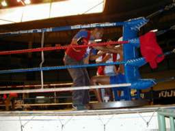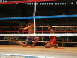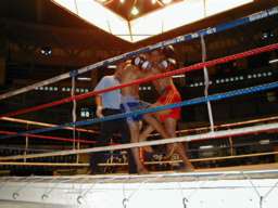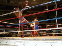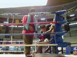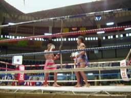 バンコクには、陸軍系のルンビニ−・スタジアムと王室系のラチャダムヌーン・スタジアムの2箇所にムエタイスタジアムがあり、毎晩どちらかのスタジアムでムエタイの試合が行われている。日曜日は、このラチャダムヌーンで行われていた。こちらのほうが格上とされるらしい。ルンピニーと違いクーラーも効いていて涼しい。 | |