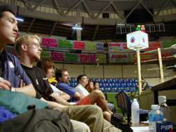 コーナー付近には、選手の兄弟や同じジムの仲間が多数詰め掛けて、大きな声援を送っていた。 |