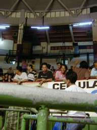 2階席は、現地の人で占められている。なにやら賭けをやっているようだ。ちなみにタイでも賭け事は禁止されている。 | |