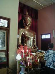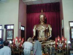 黄金仏の隣にある仏像。 100バーツくらいで金箔を買い、仏像に貼り付け健康を祈願する。 |