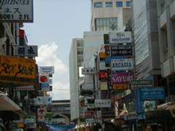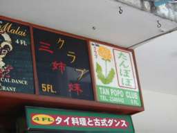 歓楽街で有名なパッポン通りの隣にタニヤ通りがある。日本語の店名がいたるところにあり、不思議な光景を醸し出していた。 |
