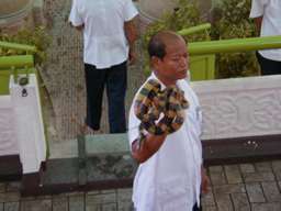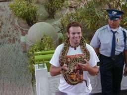 外人たちは、楽しそうに蛇を首に巻いていた。 |
