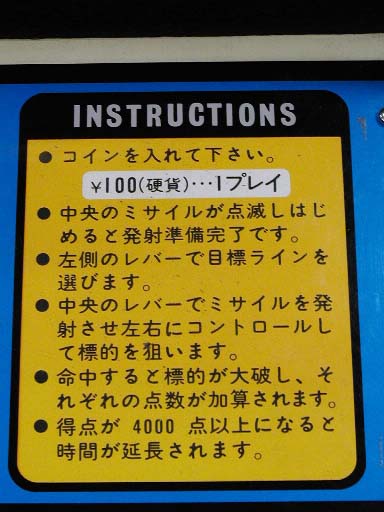 プレイインストラクション、すなわち「遊び方」インベーダーの専用筐体であるが故に直接印刷されている。シールなどとは違って幾星霜の時を経てもなお内容を確実に伝えることができる。 UFOの「ミステリー」の文字にはいまだに魂を揺さぶられる。 |