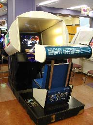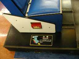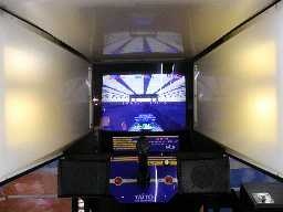 奥に引きずり込まれるような画面位置。プレイ中は両脇のランプが流れるように明滅してスピード感を表現。もっとも、プレイヤーのほとんどは画面に集中しているためそのことに気づくものは少ない。 これらのランプをコントロールする基盤や配線やプログラムも当然必要になってくる。シートのこともそうだが、妙なところでこだわりを見せている。 ある意味セガのムービング筐体よりも贅沢な機械だぜ!! |