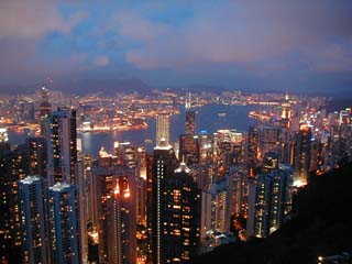 夜景は確かにスゴイ!所狭しと建てられた高層ビル群の窓明かりや遠く輝く大量 の看板の明かりが、香港の夜を美しく飾り付けるのです。 |