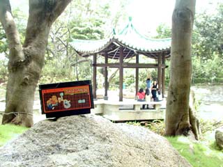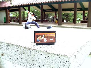| トル公: | 尖沙咀にある九龍公園はとても広く、そして沢山の人が日陰でぼんやりしたり、太極拳をしたりしていた。お弁当を持ち込んで家族団欒みたいな風景もあり、まさに香港市民の憩いの場って感じであった。 で、せっかくなので、中国つながりで「スーパーチャイニーズ」を取り出して 記念撮影してまいりました! |