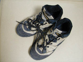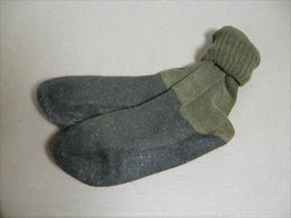 | 靴下 | つま先、かかとにあたる部分が厚いほうが靴擦れになりにくいので厚手のものを。私はルーマニア軍だか旧東ドイツ軍だかの靴下が上野で数年前に安売りしてたのを買っていたので、今回はそれを履いてみました。 |